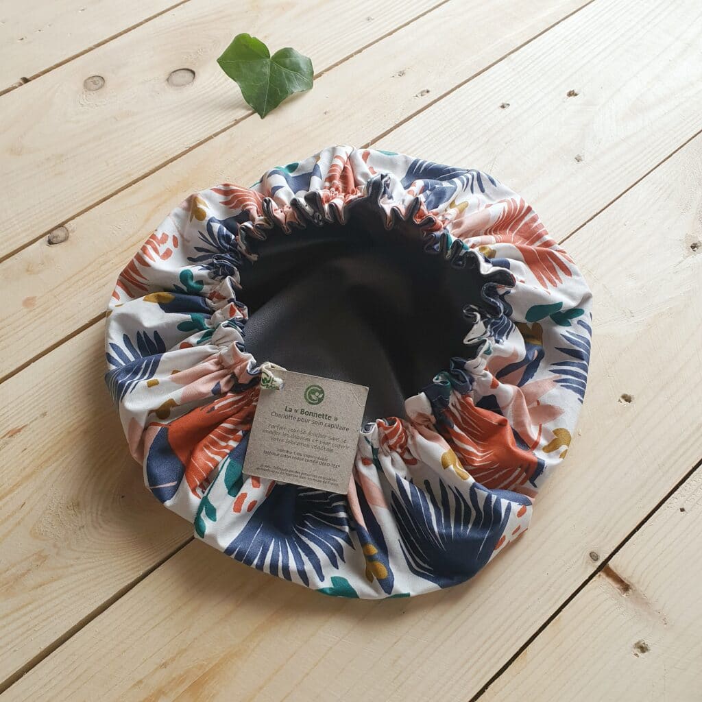 Notre charlotte pour soin capillaire permet d’éviter l’utilisation des bonnets de douche en plastique jetables et d’égayer votre toilette quotidienne grâce à ses motifs inspirés de la nature.